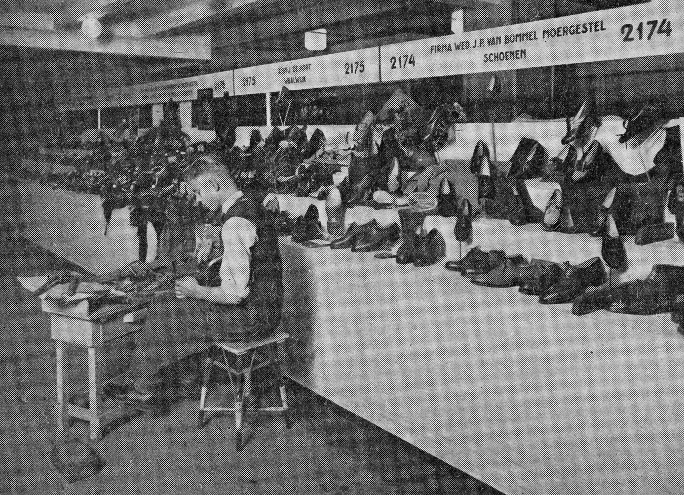 (Image below: Schoenfabriek van Bommel exhibiting at the 1939 trade fair. In the top right corner of the picture, you can see the nameplate ‘Schoenfabriek Wed. J.P. van Bommel’.)